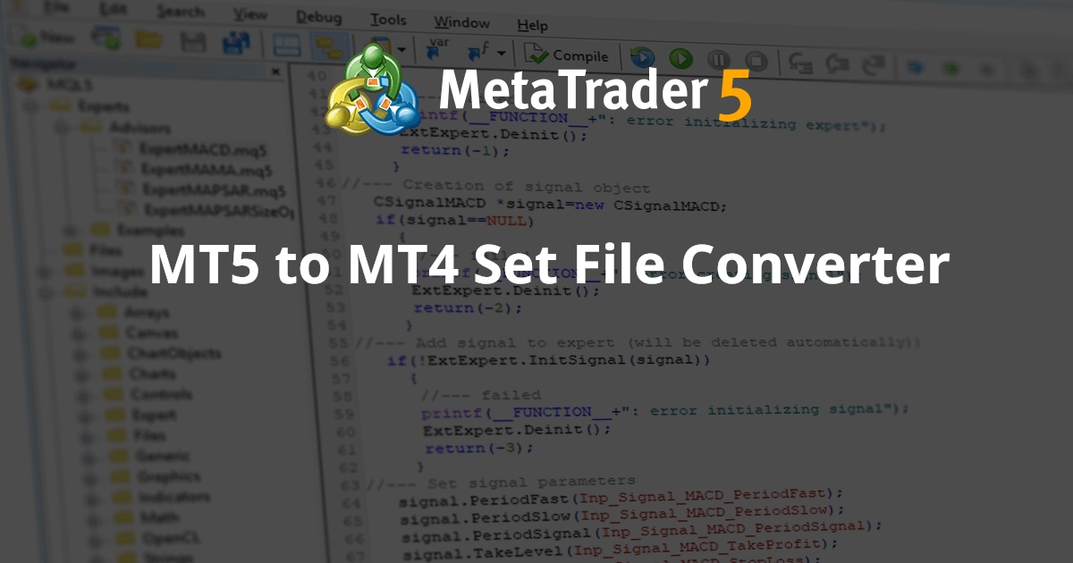 This script converts multiple .set files from MT5 format to MT4 format. This is a necessary step for optimizing and running cross-compatible EAs.