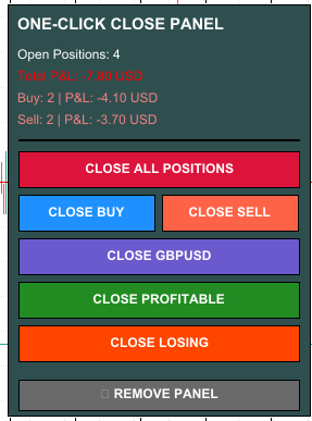 ONE-CLICK CLOSE ALL POSITIONS - PROFESSIONAL TRADING PANEL