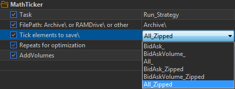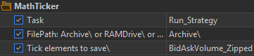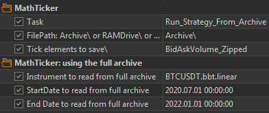 - Create an archive with all ticks from the history: Select the mode of testing by real ticks, the required instrument. Set testing dates from <= first tick to >= last tick in the available history. Set the Task variable to one of Save...To_Archive and select the option of saving ticks. Start the tester. After that a folder with the name of the tool will be created in the specified folder where the files with ticks for each year will be saved. The last year can be overwritten as necessary, for this purpose select only the current year in the dates to avoid overwriting the previous years.