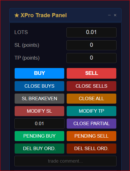 buy, sell, breakeven, close all, modify SL/TP,